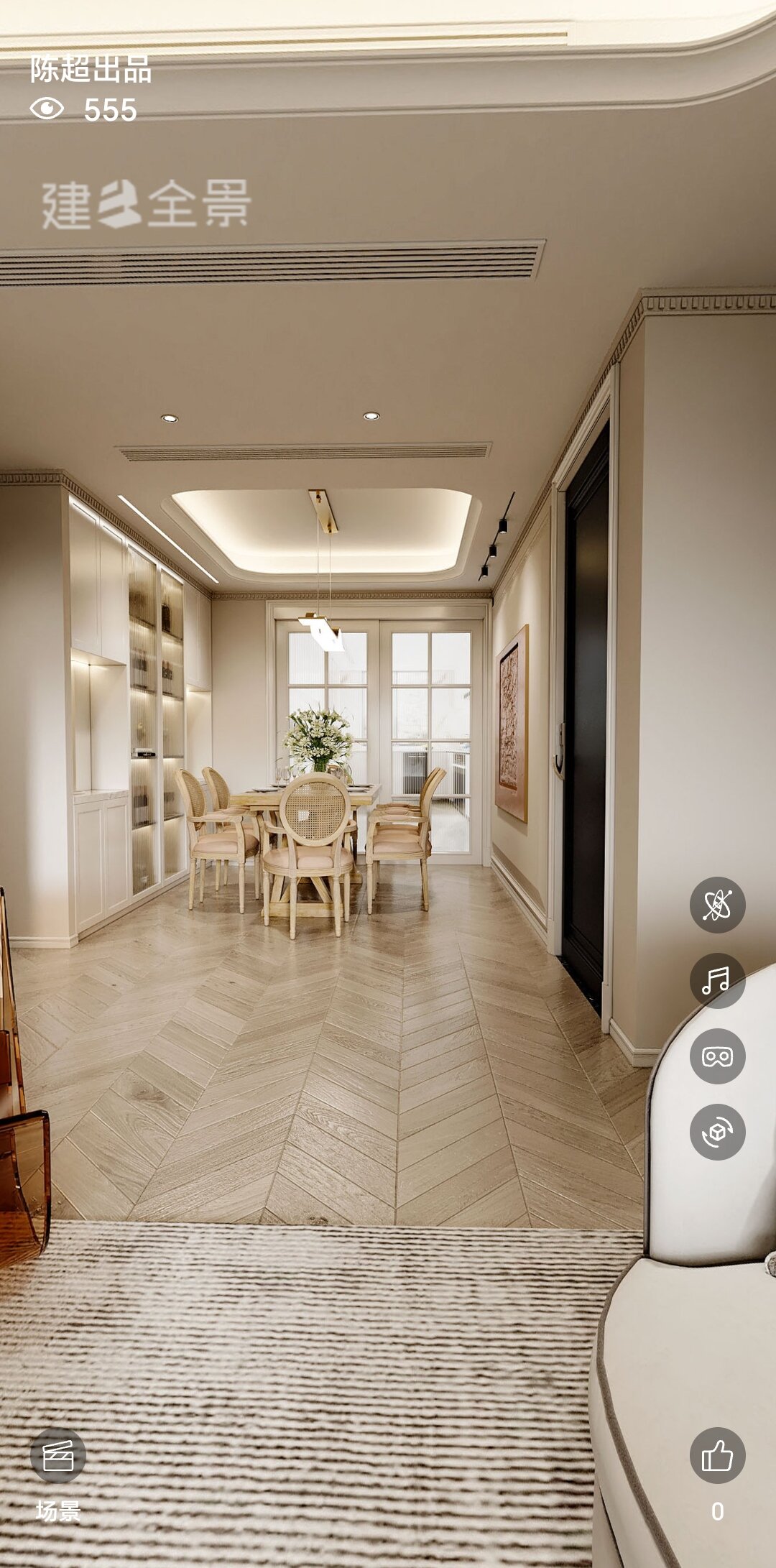 这个案例充分利用传统法式常用的线条造型,勾勒空间的理智与柔情。线条交织成诗,垂直与平行的对话,倾斜与相交的共鸣;