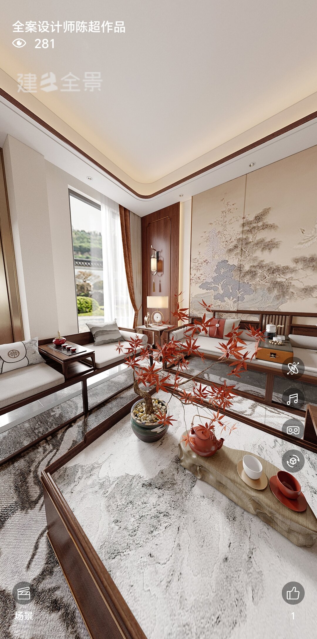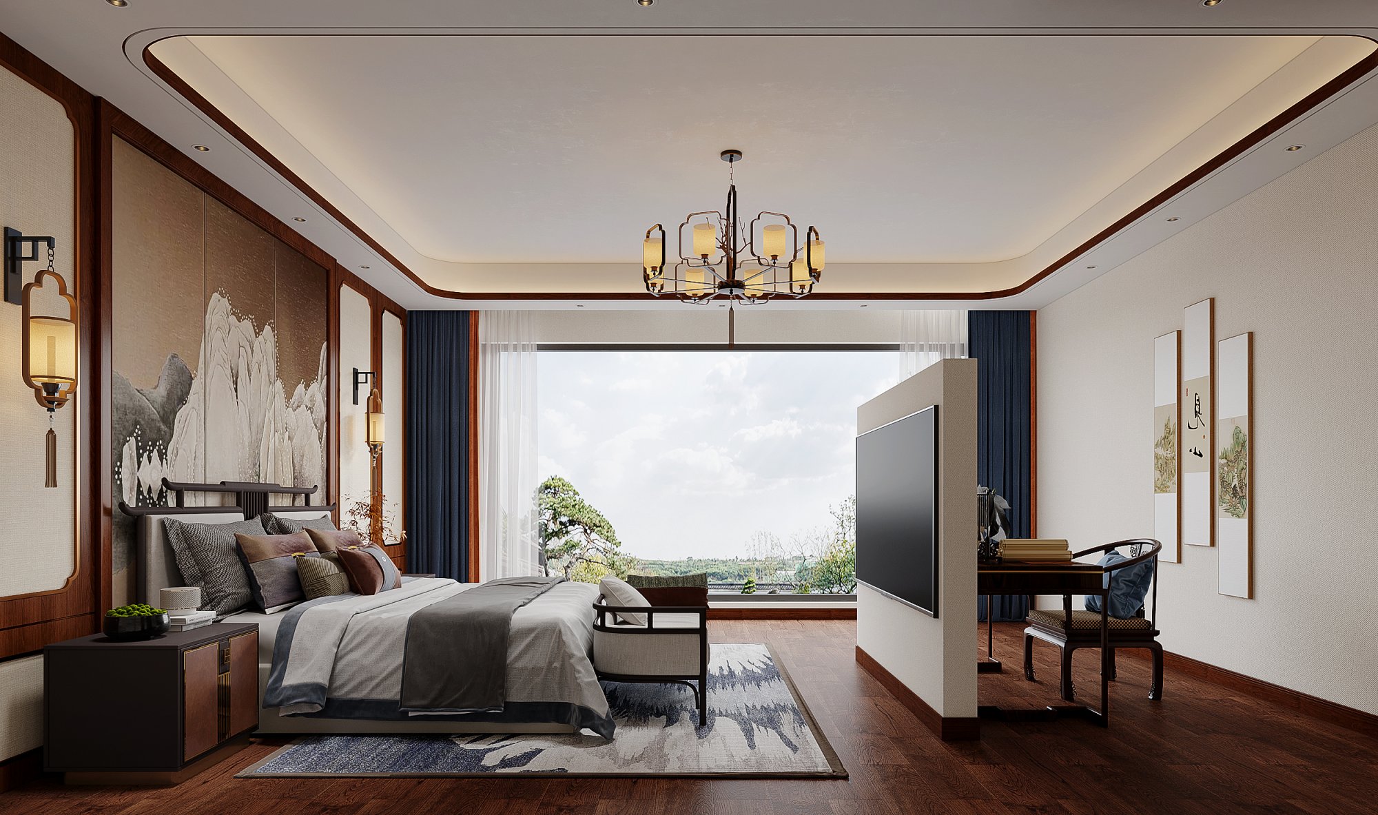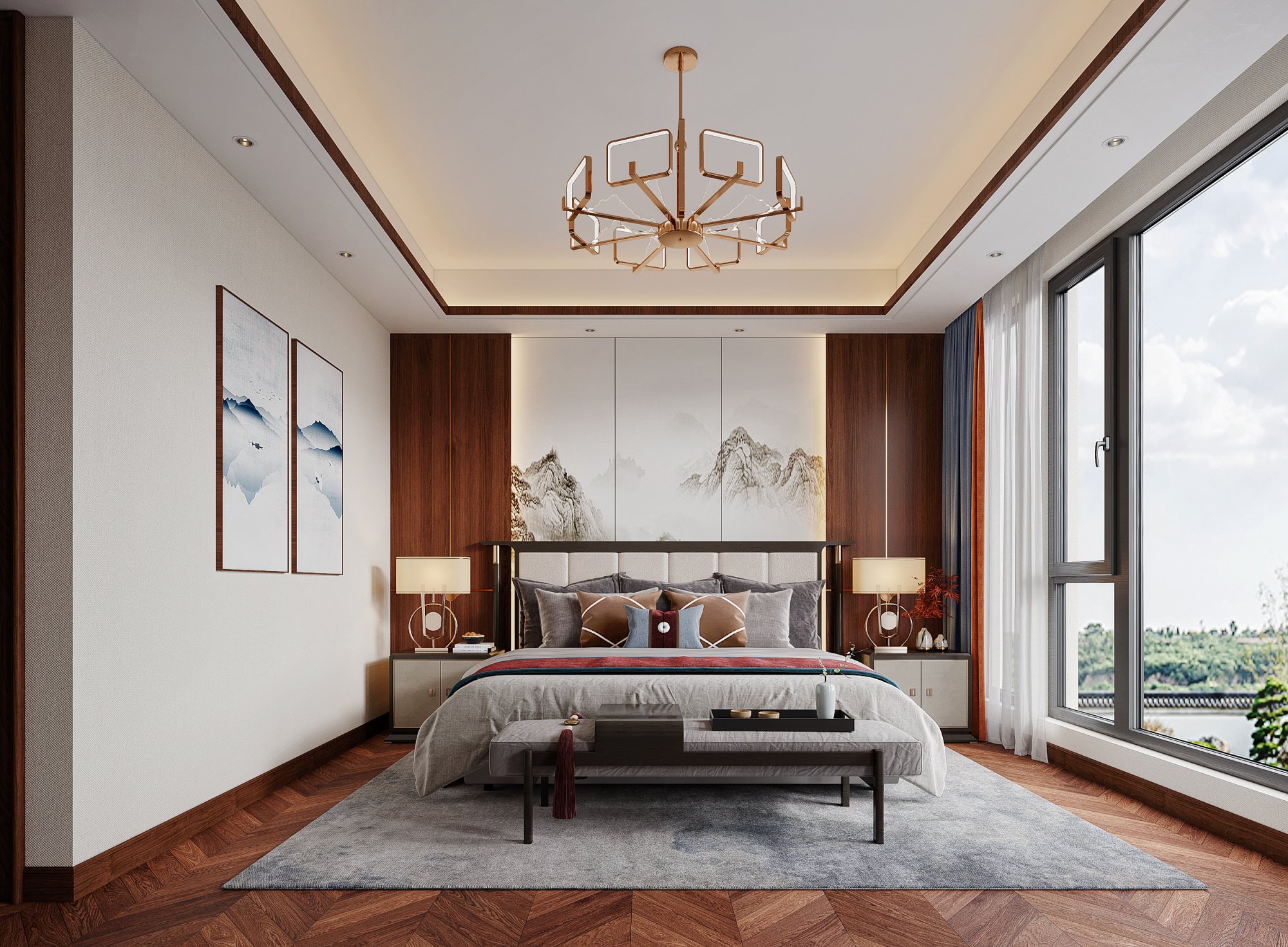 这个新中式风格的案例中,对称空间布局显得格外引人注目。
